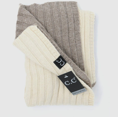 Exclusive-Black Label Two Tone Ribbed Knit Infinity Scarf
