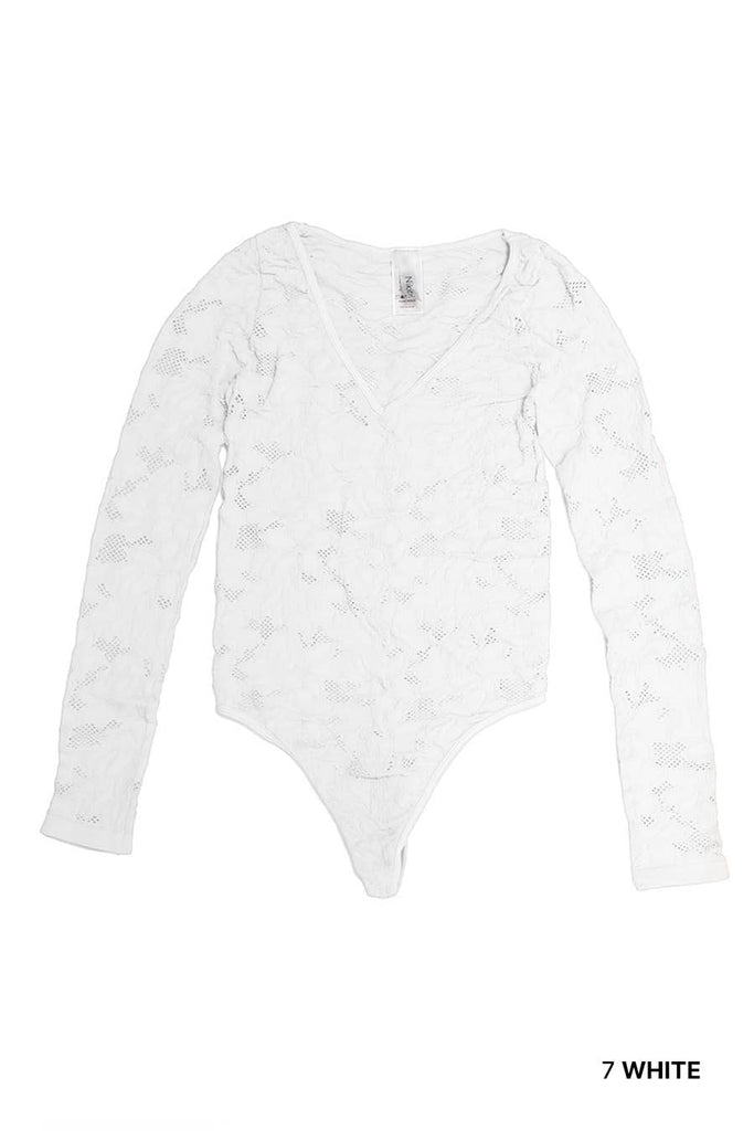 Elevate your essentials with this sophisticated lace textured bodysuit, designed for seamless layering and versatile styling. The delicate lace detailing adds visual interest while maintaining a refined aesthetic, making it an ideal foundation piece for any wardrobe. Crafted for comfort and durability, this bodysuit offers a flattering fit that works beautifully under sheer fabrics or as a standalone statement. Perfect for creating polished, intentional looks with minimal effort.