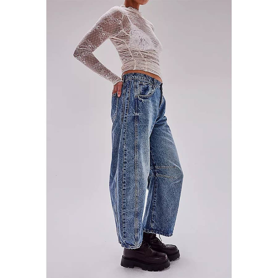 Casual Wide Leg Loose Mid Low Waist Washed Denim