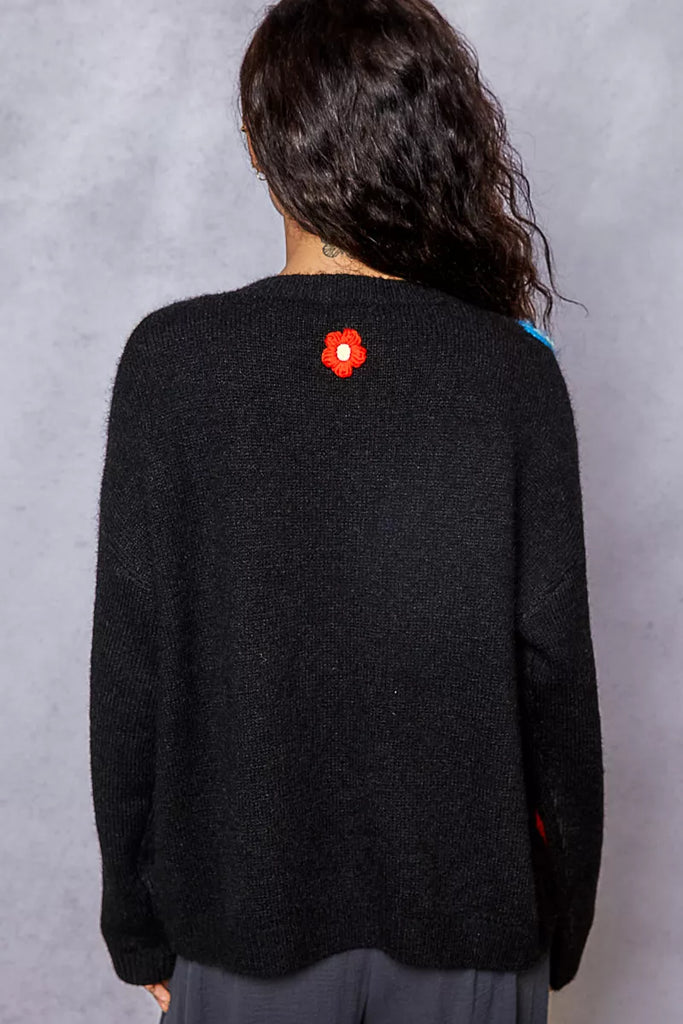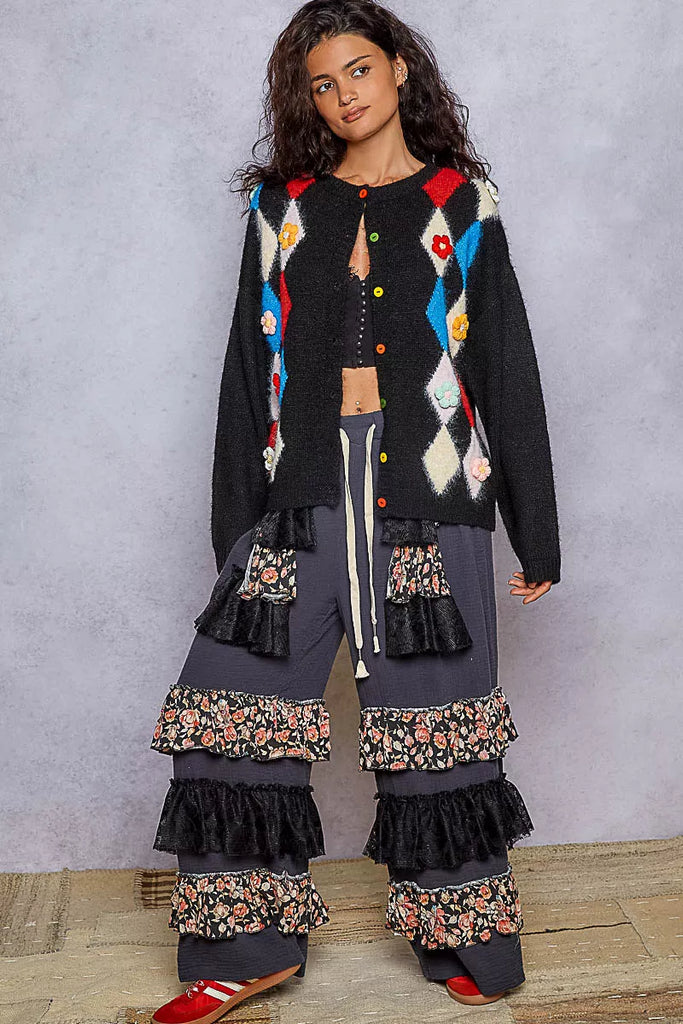 POL Button Down Diamond Pattern Round Neck Cardigan