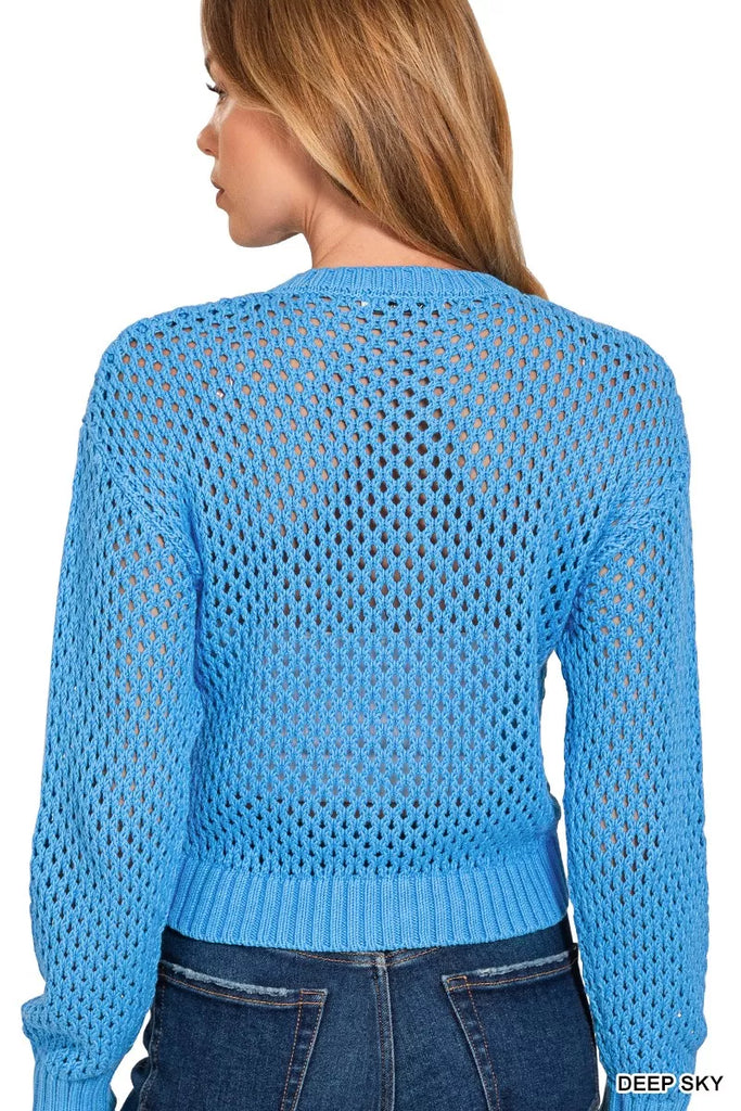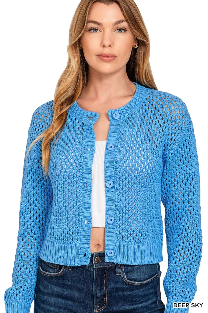 Zenana Button Down Lightweight Crochet Cardigan Sweater