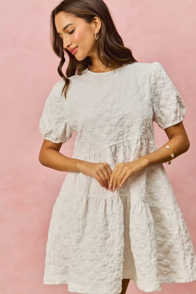 SO ME Floral Jacquard Diagnol Tiered Short Mini Dress