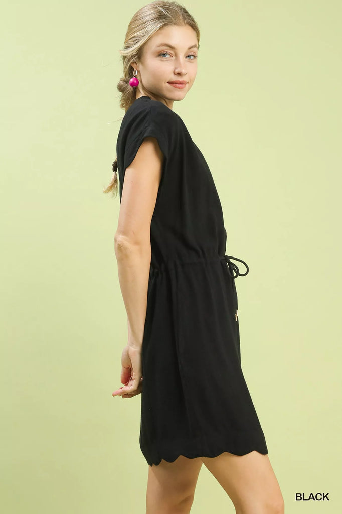 Umgee Linen Blend Scallop Hem Mini Dress