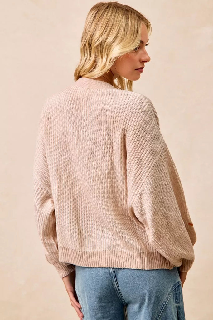 BiBi Two Tone Knit Cardigan with Leaf Patches
