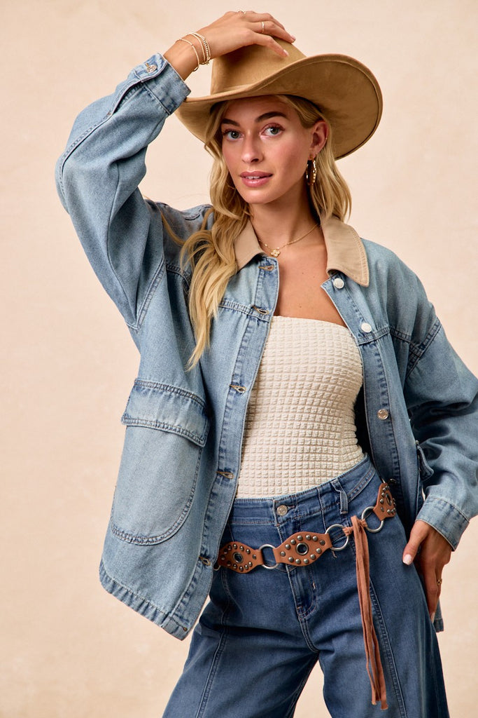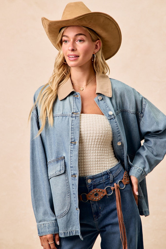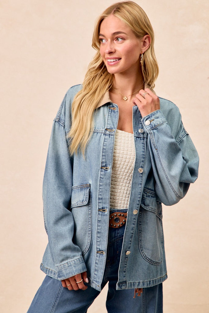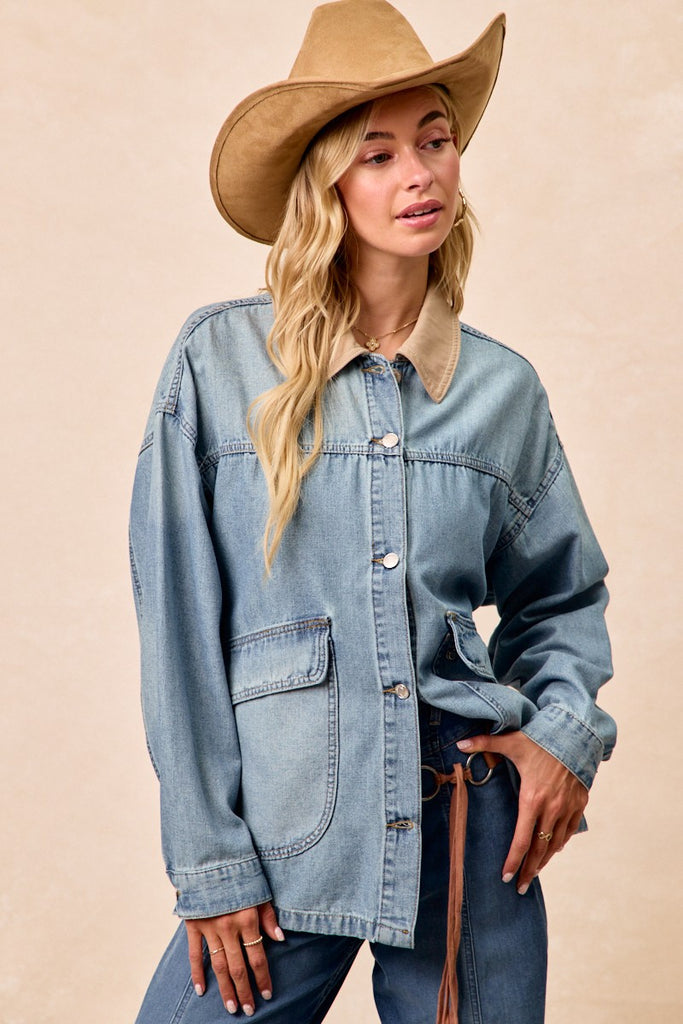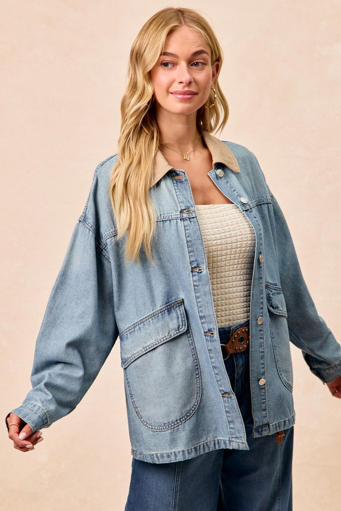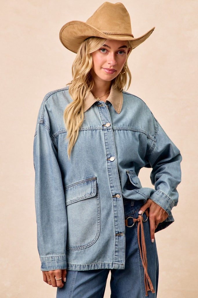 BiBi Washed Denim Jacket with Contrast Collar Detail