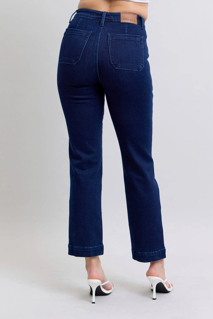 Judy Blue Full Size Hw Work Wear Knee Patch Straight Jeans Plus Size