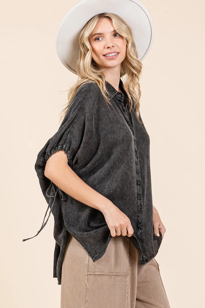 Mittoshop Mineral Wash Loose Fit Button Down Shirt