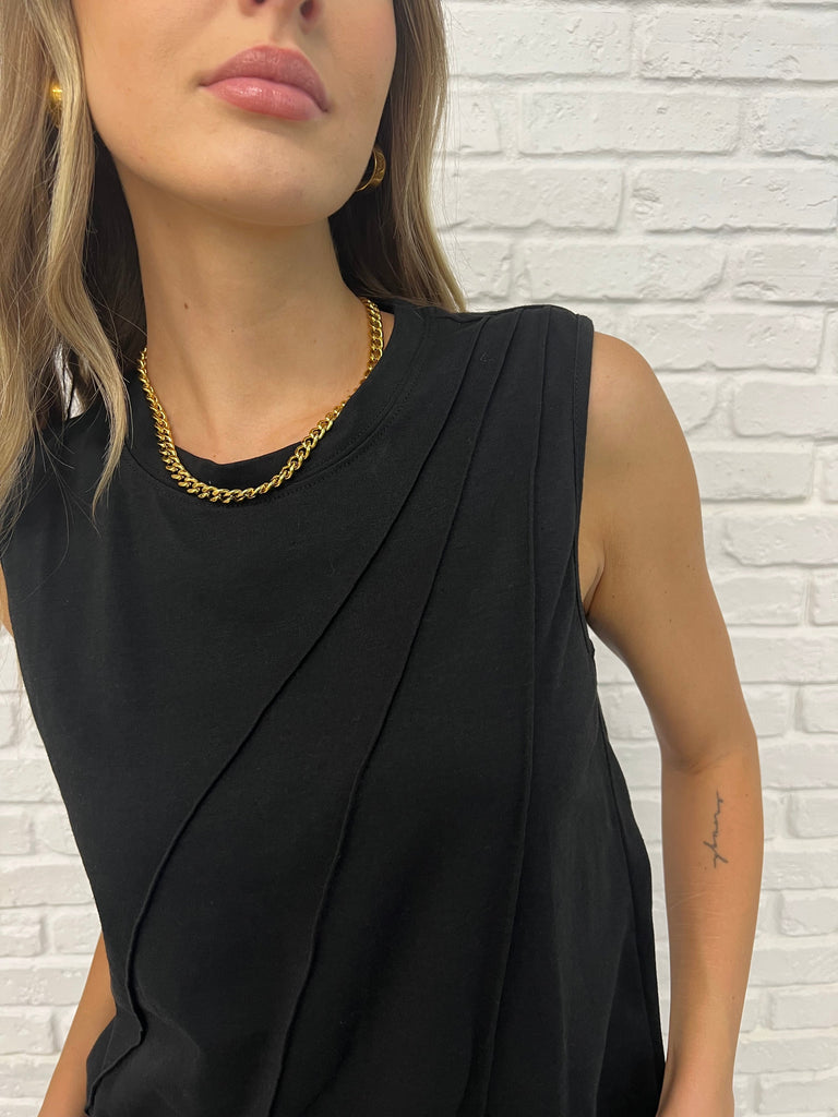 Update your style with this New Normal Pleat Detail Sleeveless Top! Made from Jersey Knit, this top features Pleat Details, a Banded Round Neckline, and Sleeveless design. Perfect for any casual outing, this top adds a touch of elegance and chic to your wardrobe.