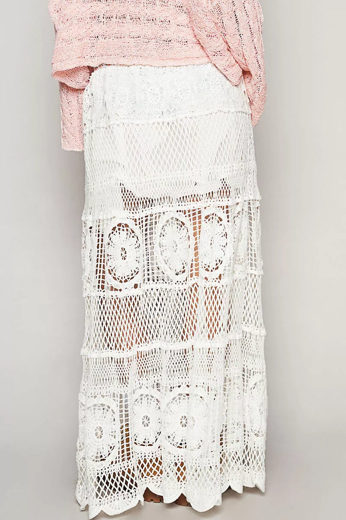 POL Crochet Floral Flared Skirt with Elastic Waist Band