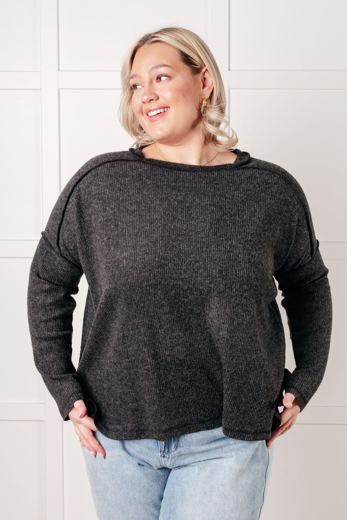 Get cozy and stylish with our Simply Basic Ribbed Hacci Sweater. The brushed Hacci fabric offers a soft touch, while the ribbed texture adds a touch of elegance. The banded round neckline and drop shoulder give a relaxed fit, with side slits and exposed seams for added detail. Perfect for any casual occasion.