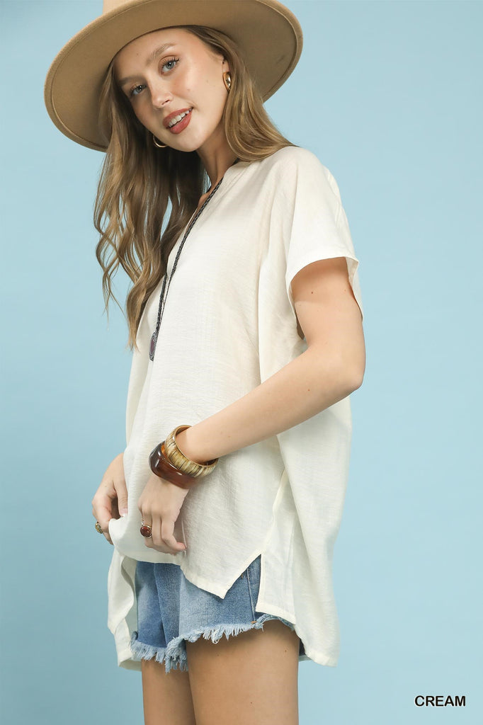 Umgee Flowy V-Neck Short Sleeve Blouse