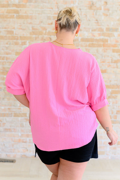 Be ready for anything in this fun and stylish Up For Anything V-Neck Blouse. The crinkle woven fabric adds texture to the playful pink color, while the half balloon sleeves and exaggerated banded cuffs add a playful touch. Dress it up for the office or down for a weekend on the town. (No need to choose, it can do both!)