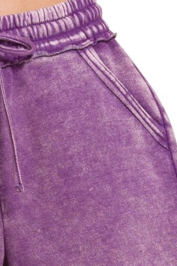 Zenana Acid Wash Fleece Drawstring Shorts With Pockets