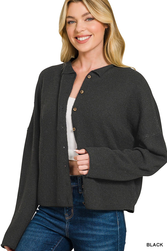 Zenana Collared Button Down Cardigan Sweater