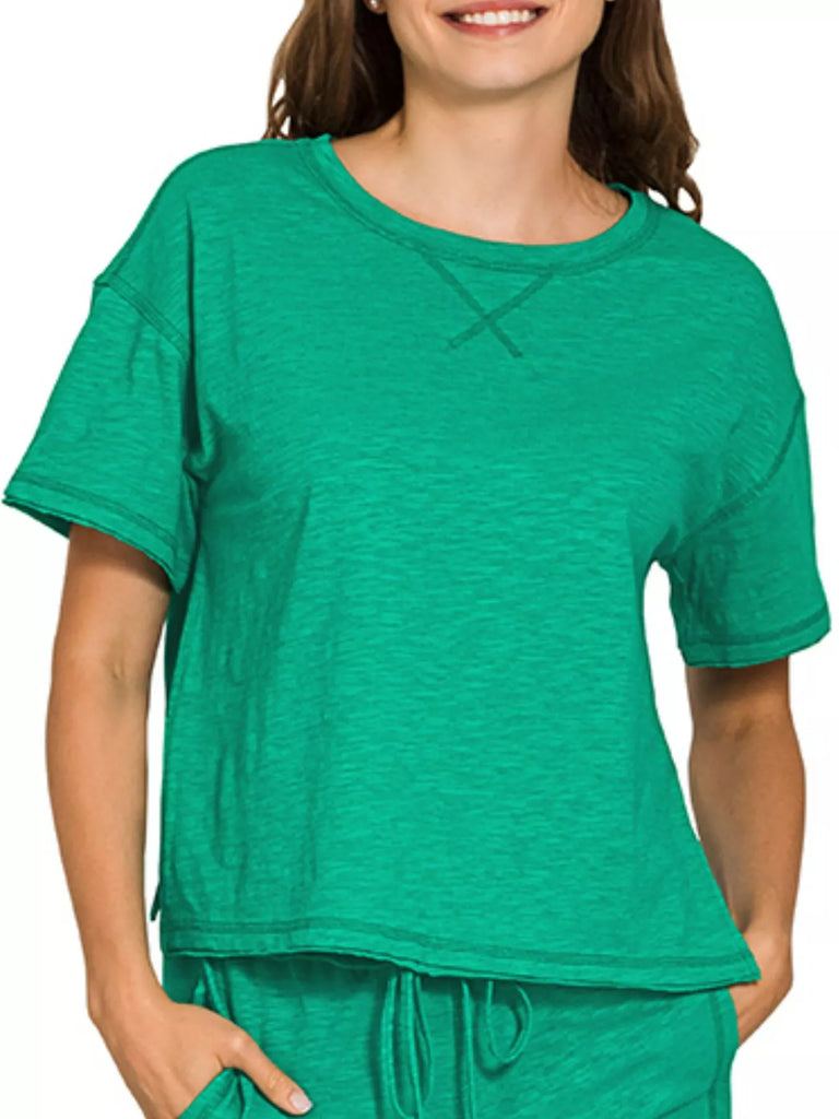 Zenana Cotton Slub Short Sleeve Tee and Pants Set