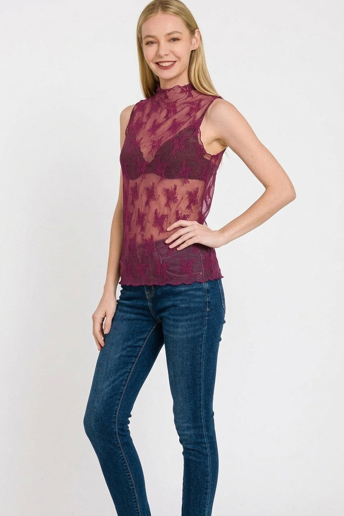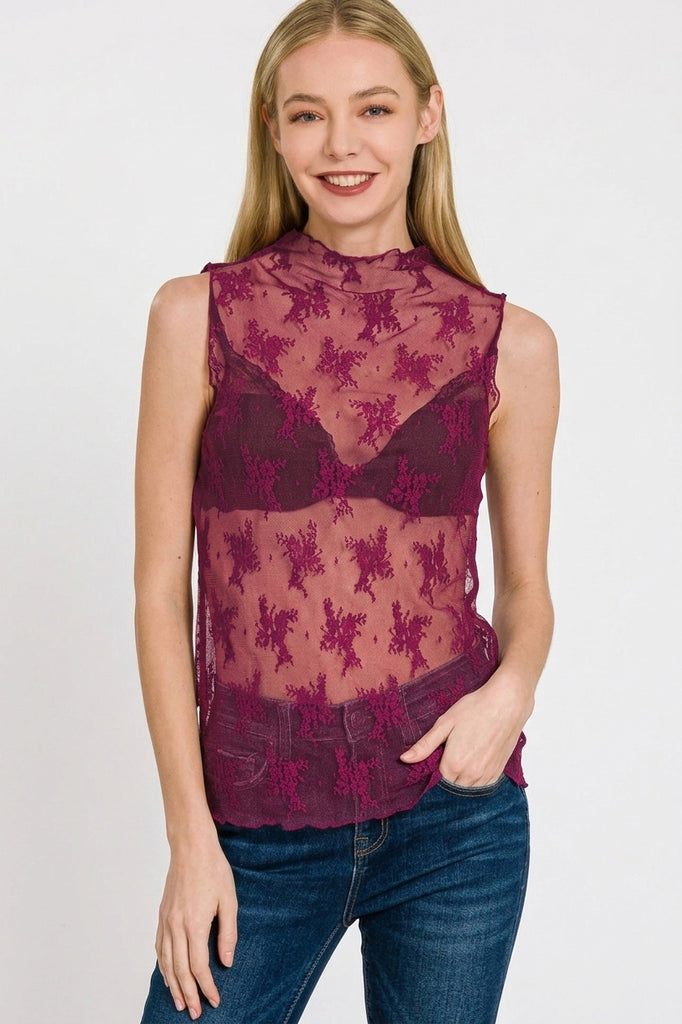 Zenana Lace See-through Layering Sleeveless Top