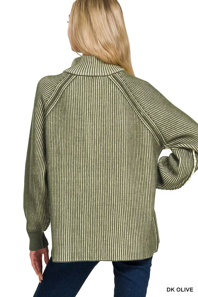 Stay cozy and stylish in this ribbed two-tone half zip sweater. The unique two-tone design adds a modern twist to the classic ribbed knit construction. Featuring a half zip closure, this sweater offers versatility in styling and temperature control. The ribbed texture adds depth and interest to the look, while providing a snug and comfortable fit. Perfect for layering or wearing on its own, this sweater is a versatile piece that can be dressed up or down for any occasion. Elevate your cold-weather wardrobe with this chic and on-trend ribbed two-tone half zip sweater.