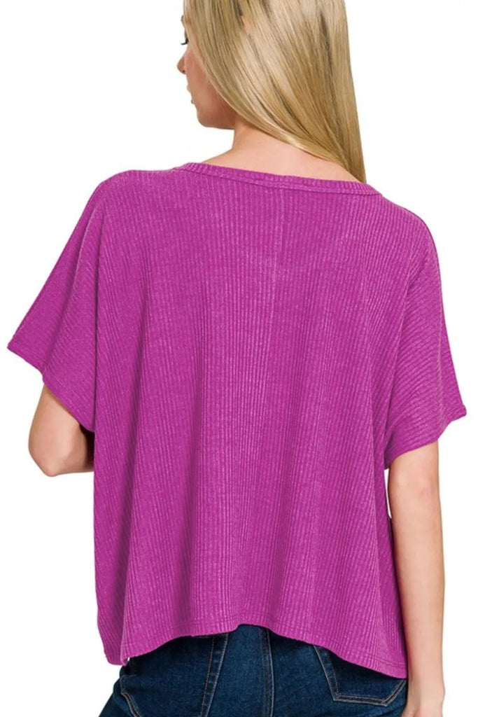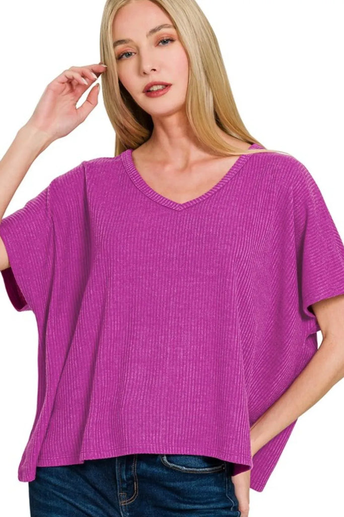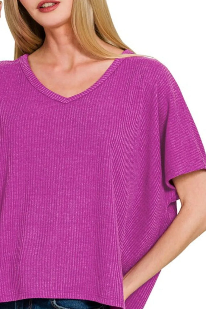 Zenana Ribbed V-Neck Short-Sleeve Knit Top