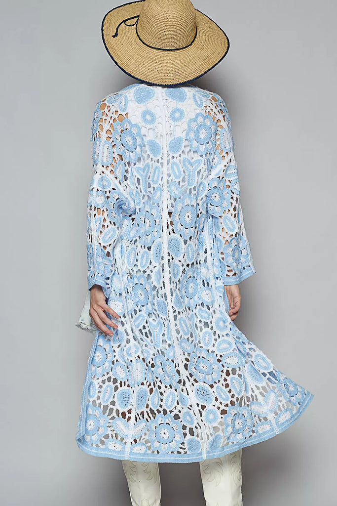 POL Open Front Crochet Cardigan with Knit Weave Patterns