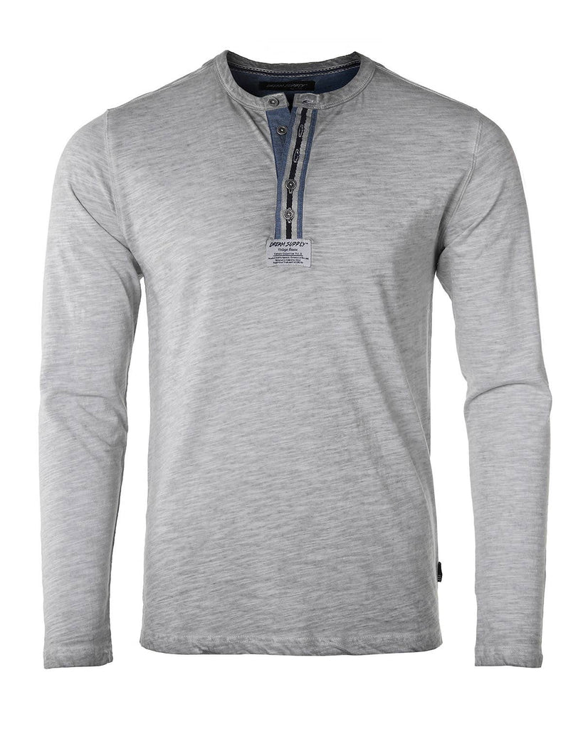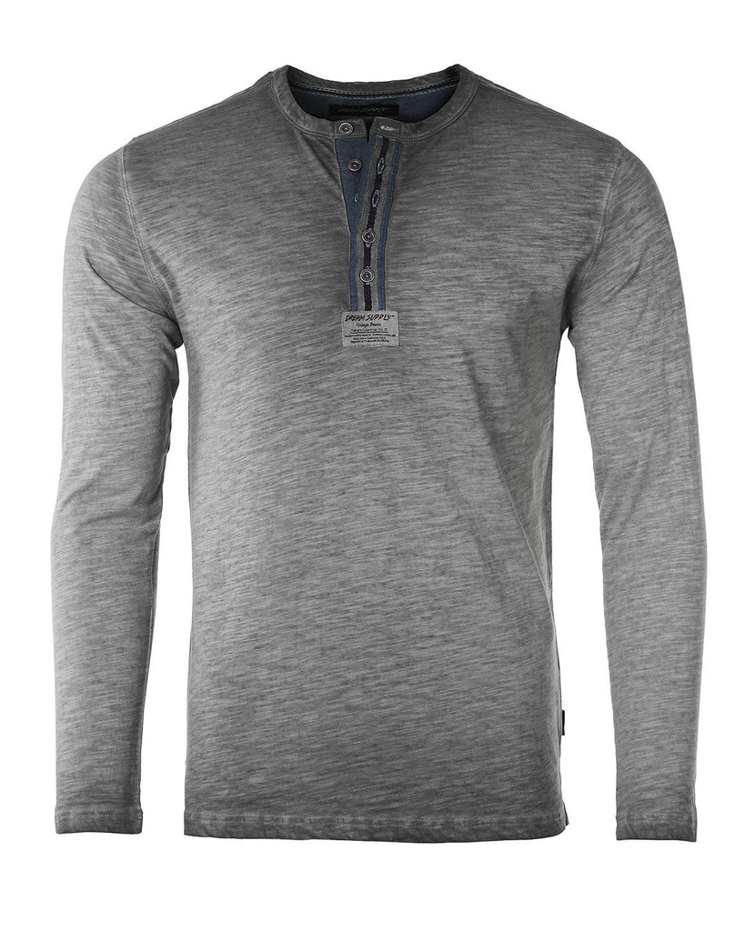 Long Sleeve Crew Neck Vintage Button Henley T-Shirt