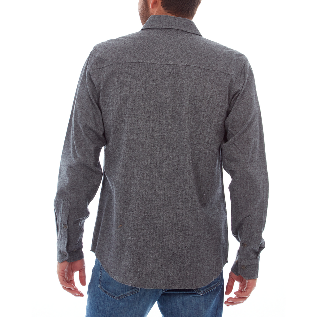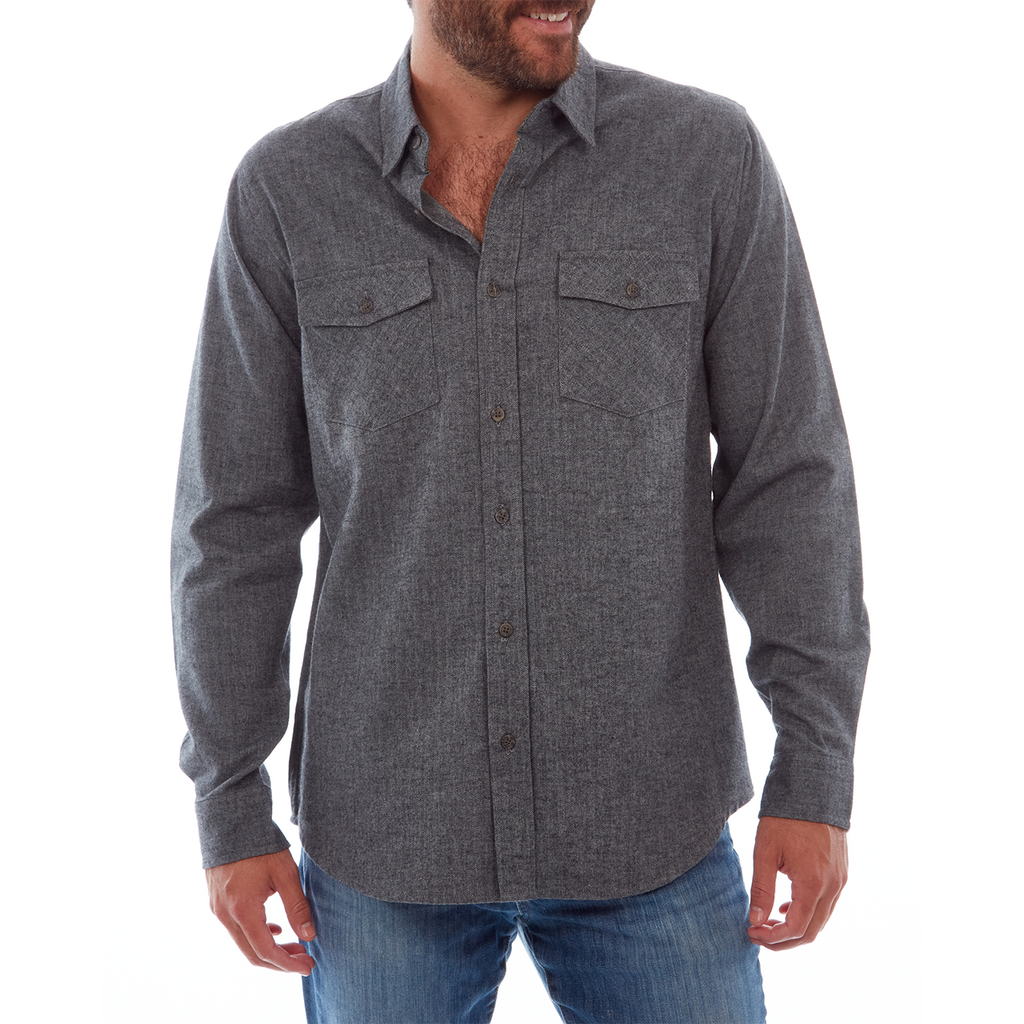 Long sleeve flannel herringbone button down shirt with 2 patch pockets.