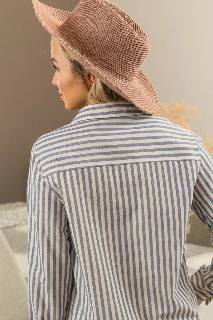 BiBi Lurex Linen Stripe Shirt Button Down Top