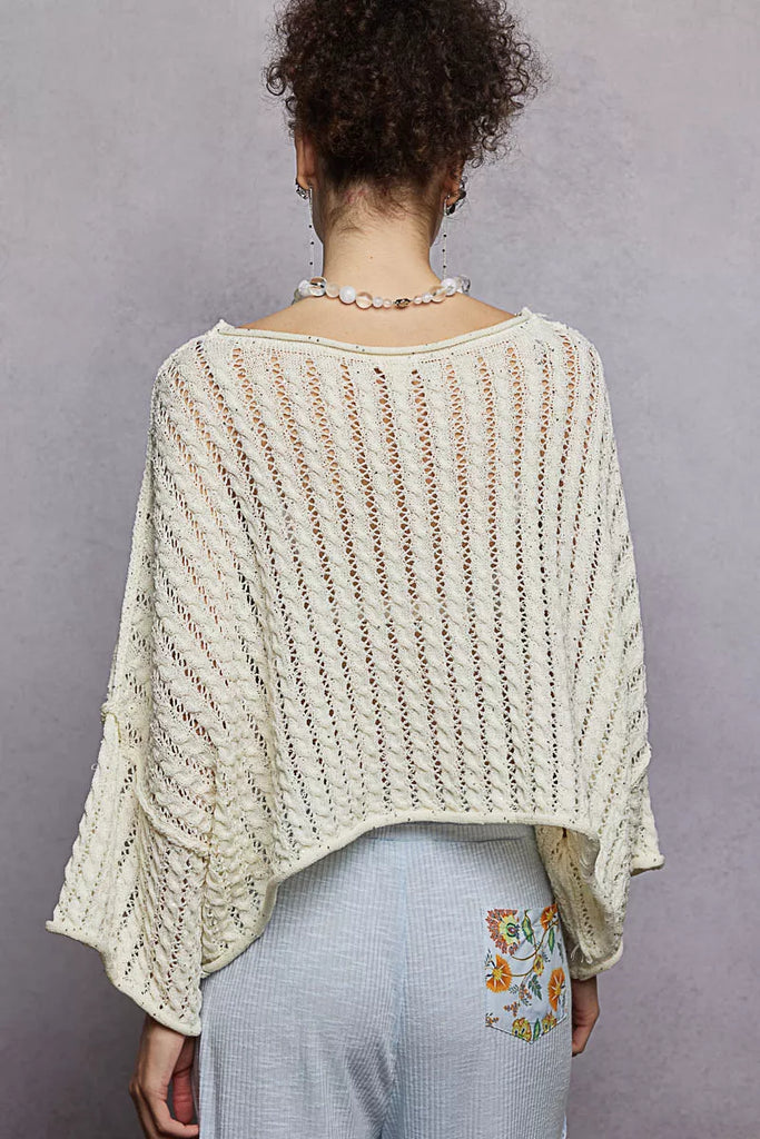 POL Cable-Knit Openwork Round Neck Cropped Sweater