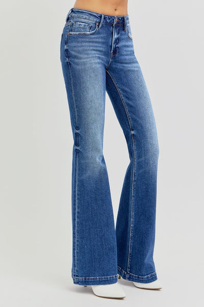RISEN Full Size Low Rise Flare Jeans with Pockets