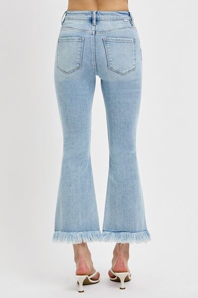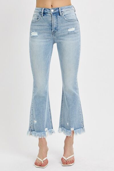 RISEN Full Size Raw Hem Distressed Cropped Flare Jeans Plus Size