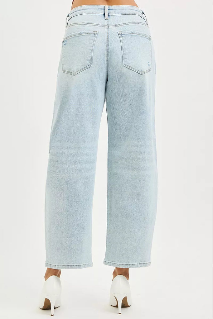 The High Rise Crop Barrel Jeans feature a flattering high-rise waist and a cropped length for a chic and modern look. The barrel fit provides a unique silhouette that is both stylish and comfortable. Made from quality denim, these jeans are durable and versatile for any occasion. Pair them with your favorite tops and shoes for a trendy outfit. Elevate your style with the fashionable High Rise Crop Barrel Jeans for a sophisticated and on-trend ensemble.