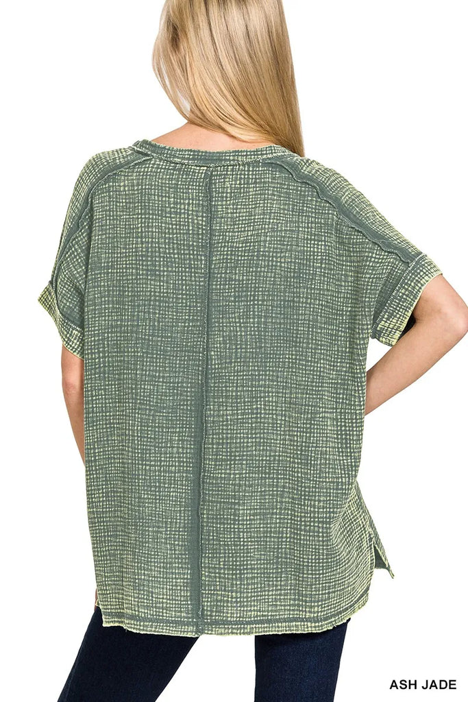 Zenana Acid Washed Double Gauze V-Neck Tee