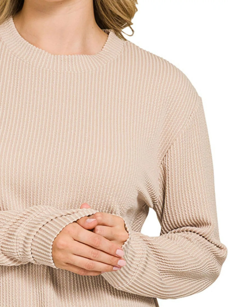 Zenana Full Size Raised Rib Round Neck Long Sleeve Top Plus Size