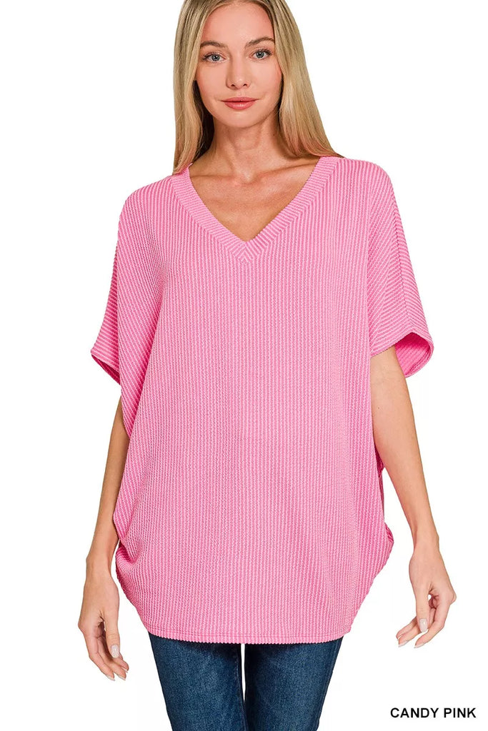 Zenana Raised Rib V-Neck Batwing Top