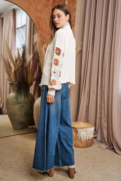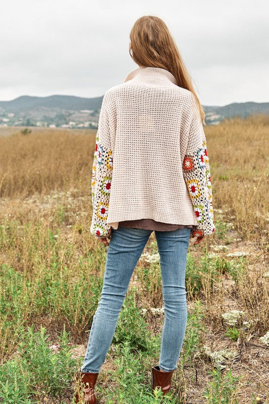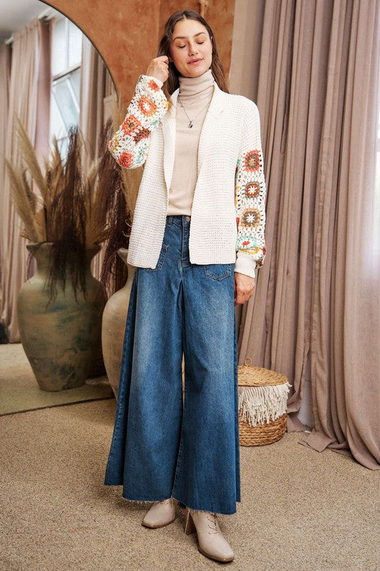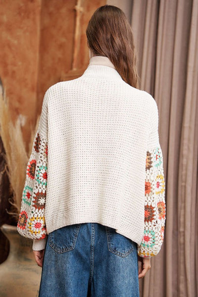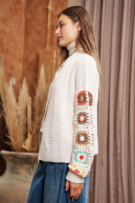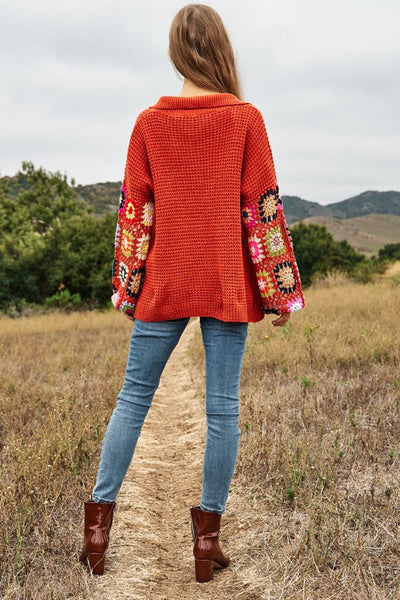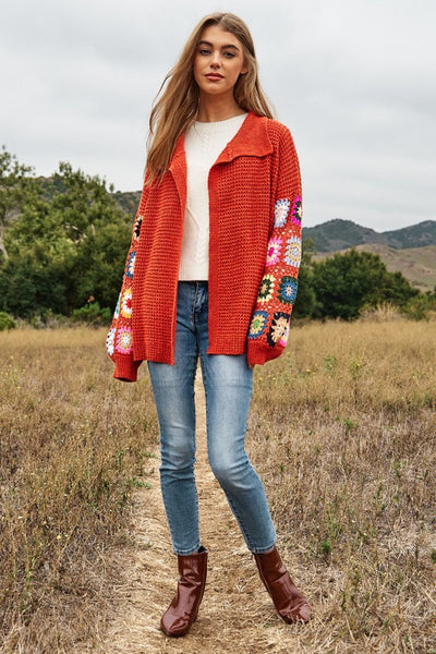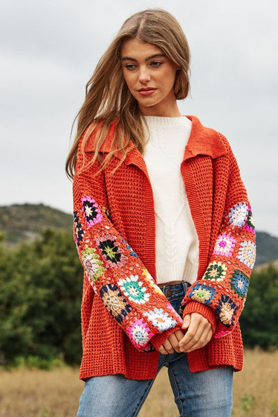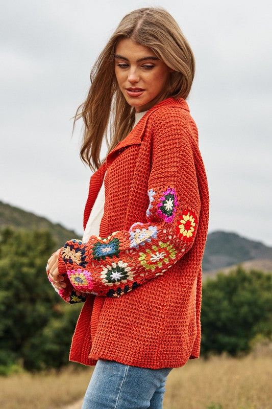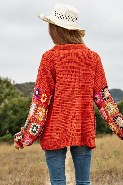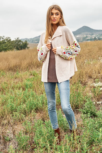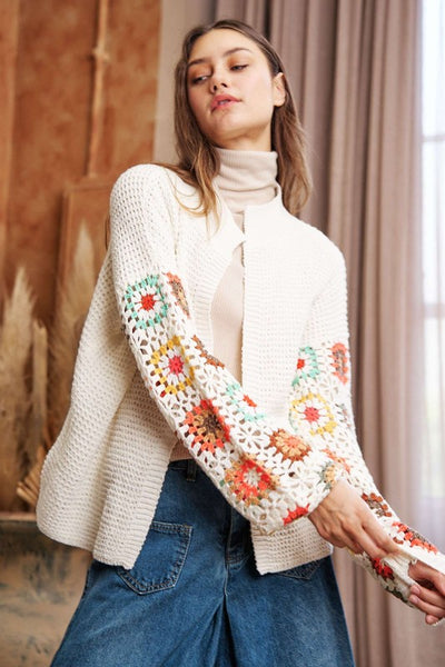 Crochet Floral Printed Long Sleeve Knit Cardigan
