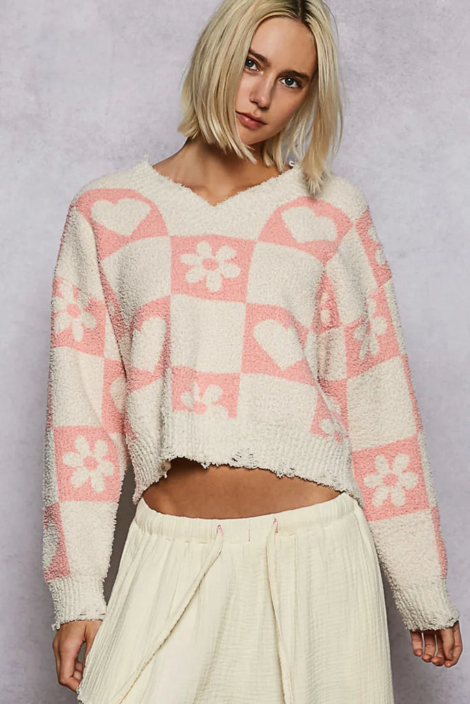 This adorable cropped pullover features a luxurious teddy bear fleece construction in a charming pink and cream checkered pattern. The oversized fit provides ultimate comfort while the cropped silhouette adds a fashion modern touch. Made from soft, plush material that offers exceptional warmth and coziness. Perfect for casual outings, lounging, or layering. The relaxed fit flatters all body types while the playful pattern adds a youthful, fashionable element to any wardrobe. Easy to style with high-waisted bottoms for a chic contemporary look.