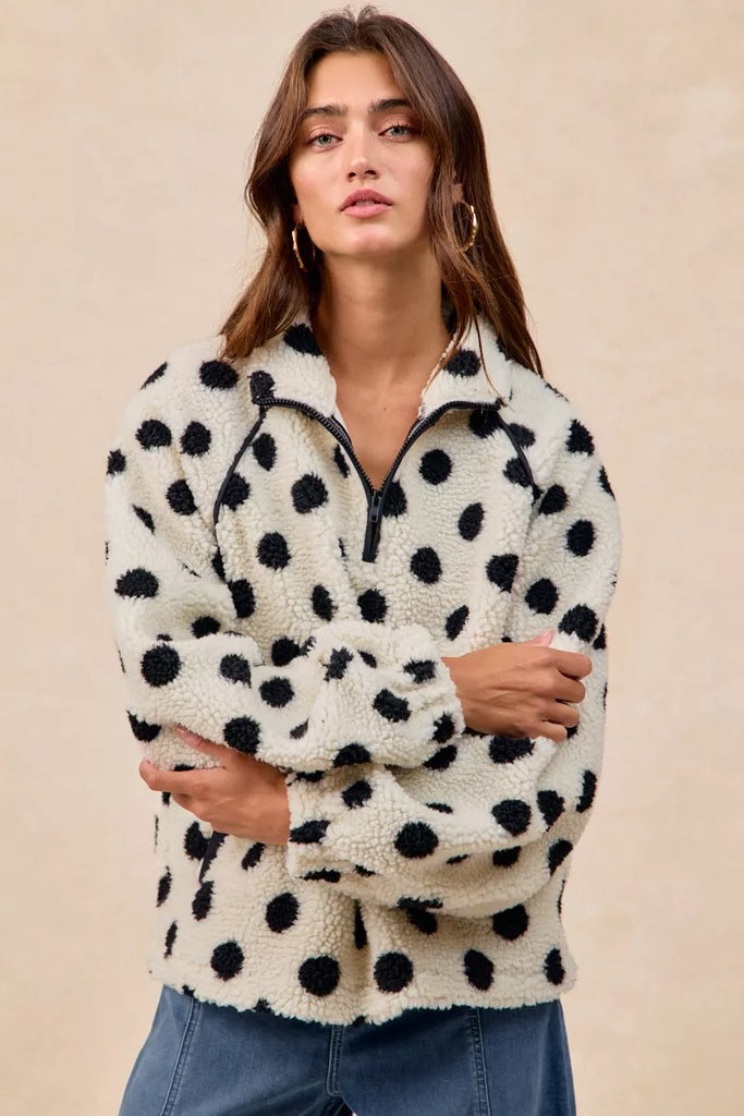 BiBi Polka Dot Sherpa Half Zip Up Top with Side Pocket