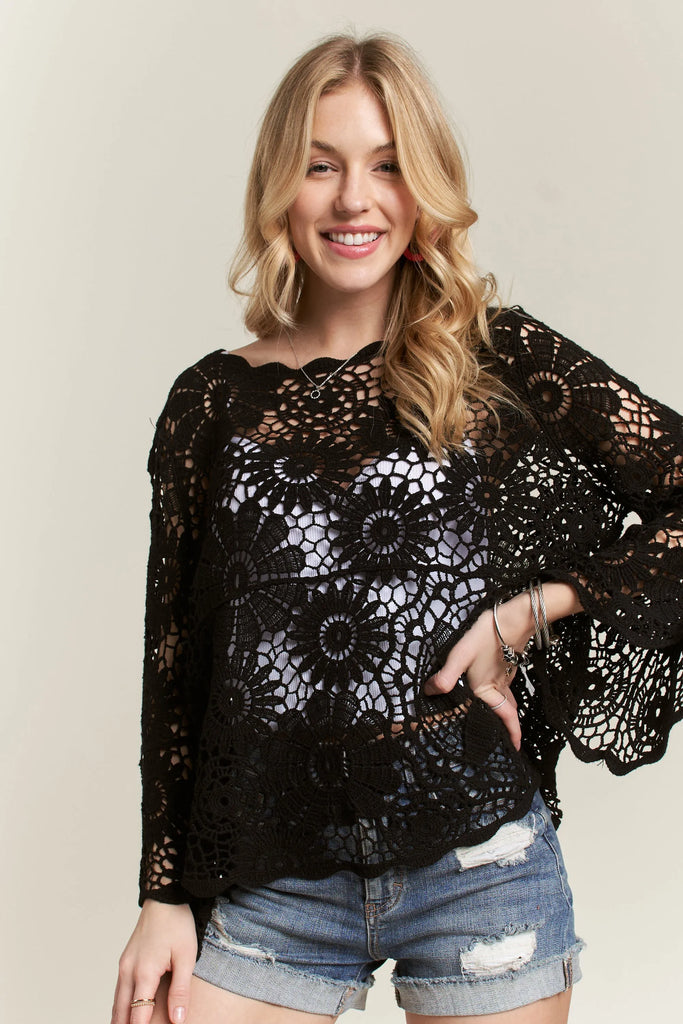 ADORA Bell Sleeve Crochet Top
