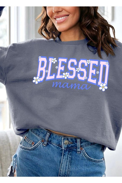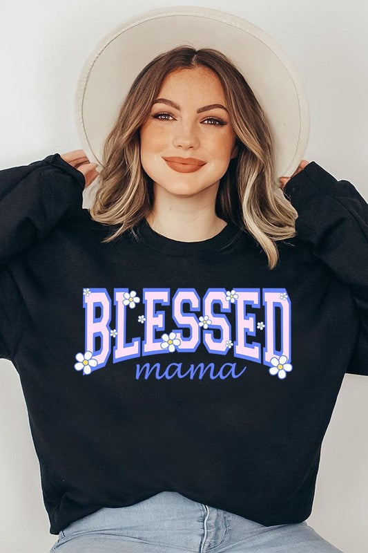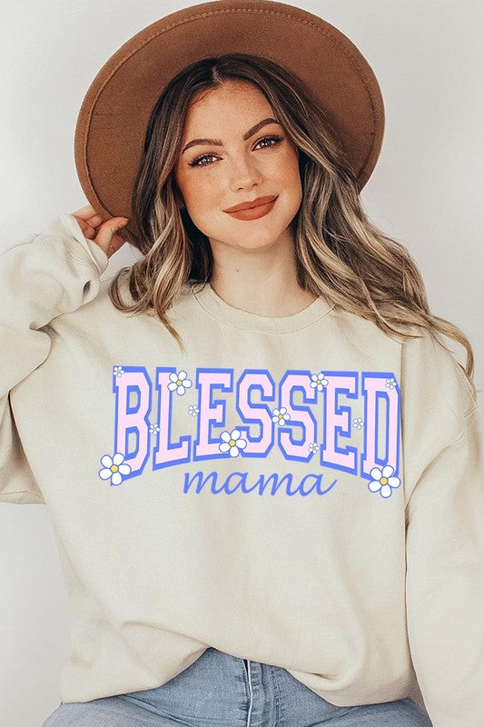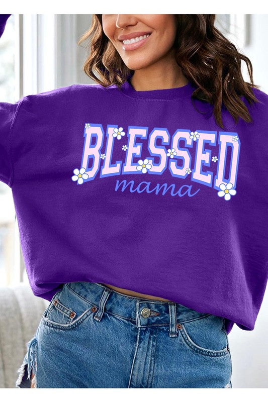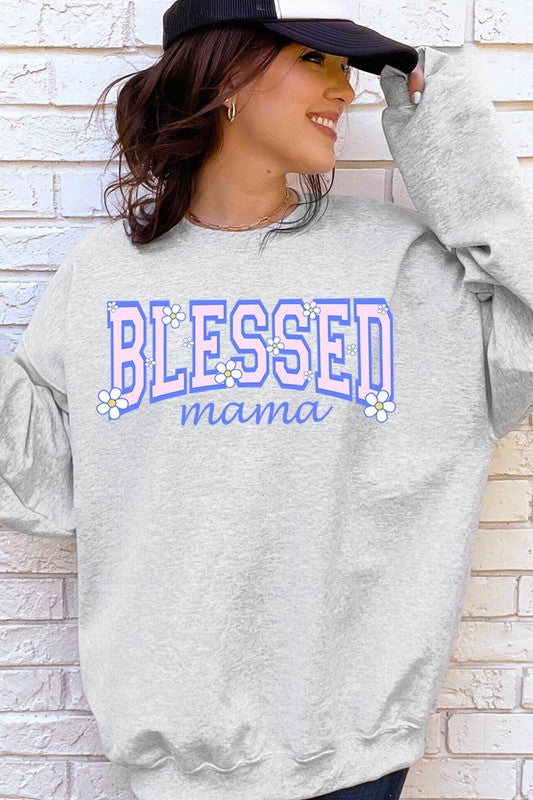 Blessed Mama Mothers Day Oversized Graphic Fleece Sweatshirts.