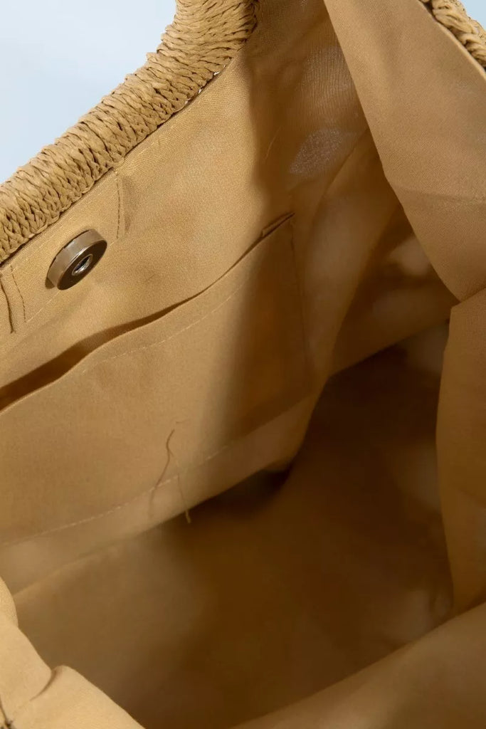 A square straw braided tote bag is a trendy and practical accessory that adds a touch of natural charm to your look. The braided straw construction gives the bag a unique and stylish texture, perfect for a summery and bohemian vibe. The square shape offers a structured and modern silhouette, making it a versatile piece for various occasions. This tote bag is spacious enough to hold your essentials while providing a fashionable touch to your outfit. Ideal for beach days, picnics, or everyday use, the square straw braided tote bag is a must-have accessory for a laid-back and chic style.