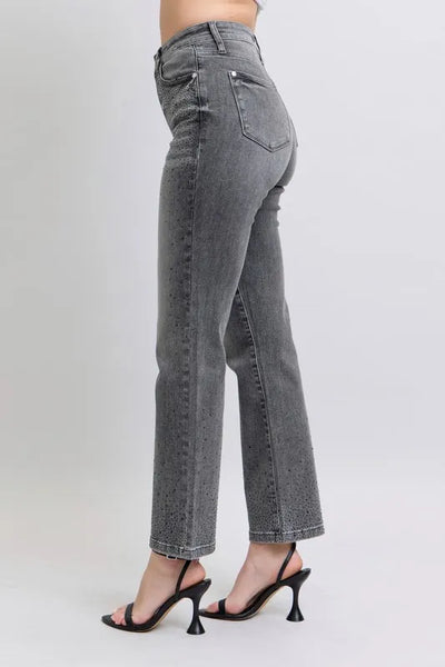 Judy Blue Full Size High Waist Rhinestone Straight Jeans Plus Size