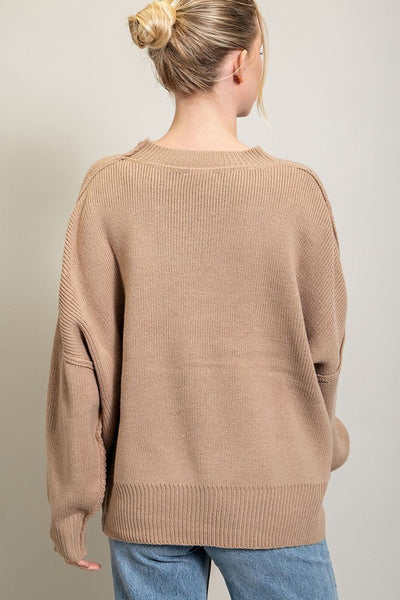 Our Long Sleeve Ribbed Sweater is the epitome of comfort and style. Crafted from solid ribbed fabric, this pullover sweater boasts an oversized and relaxed fit that's perfect for casual days. The added seams provide subtle detailing, while the rounded neckline adds a touch of classic elegance. To enhance mobility and style, we've incorporated two side slits into the design.