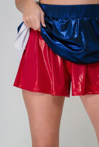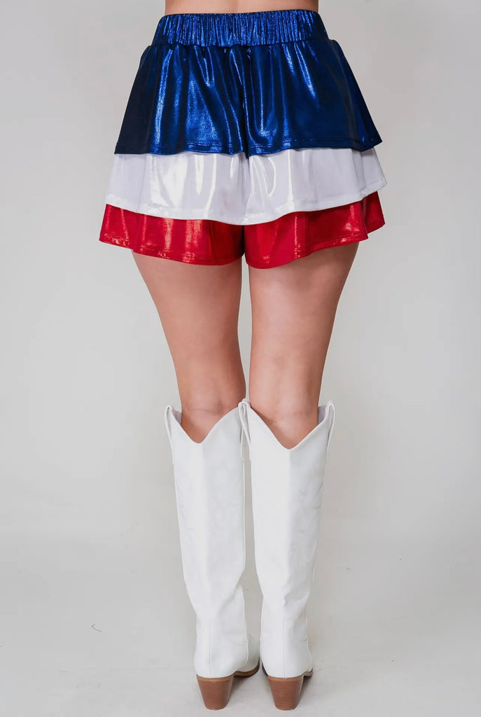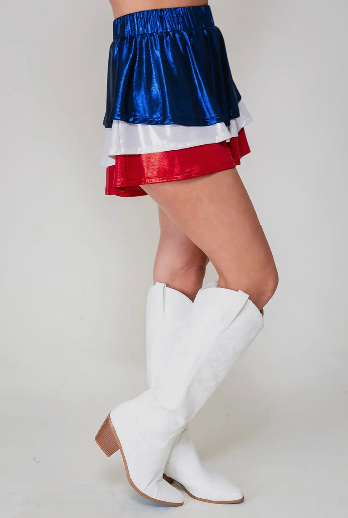 Celebrate the 4th of July in style with our Red White and Blue Skort! This versatile skirt-shorts hybrid features a patriotic color scheme that will make you stand out in any crowd. Made with high-quality materials, it offers both comfort and style for all-day wear. Perfect for any Independence Day celebration!