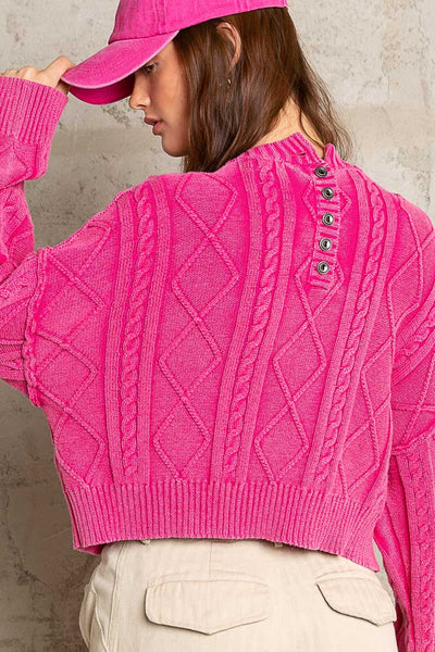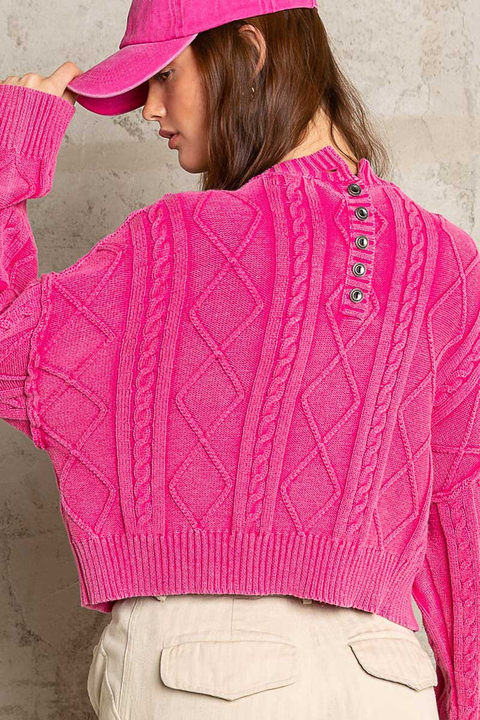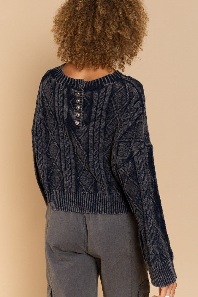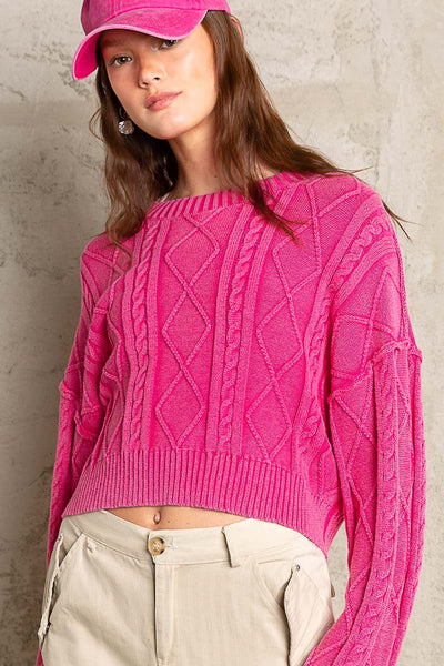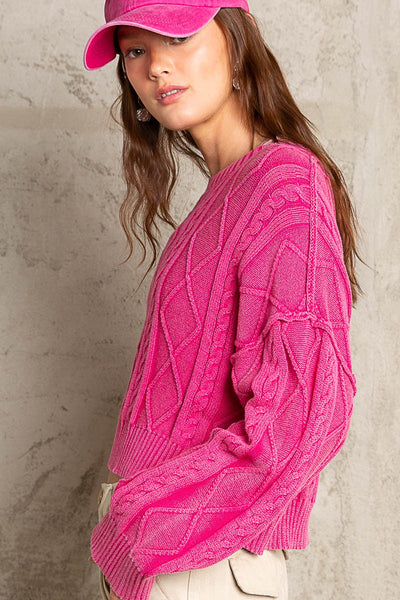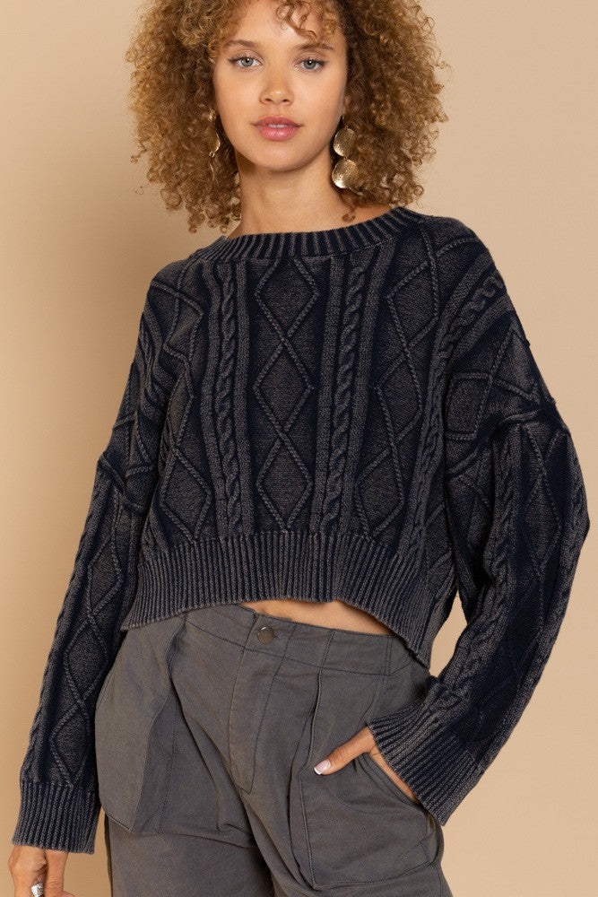 This round neck cable knitted sweater is designed with long sleeves made from soft fabric, providing comfortable wear. The ribbed cuffs and hem add a classic touch, making this sweater suitable for a variety of stylish casual looks.