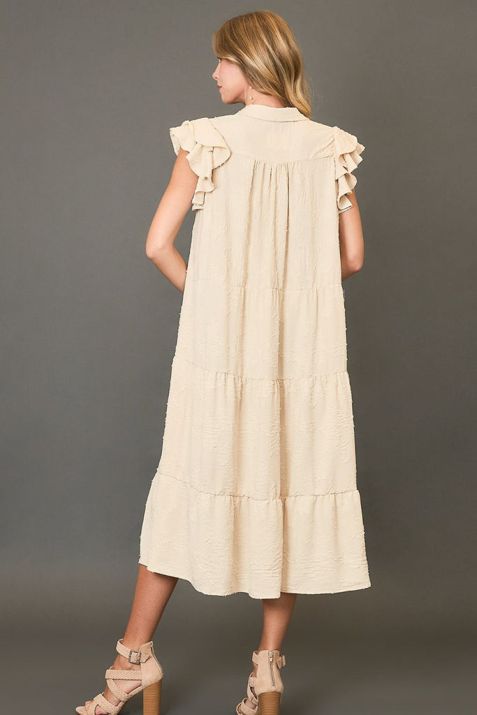 Umgee Full Size Tiered Floral Burnout Ruffle Sleeve Midi Dress Plus Size