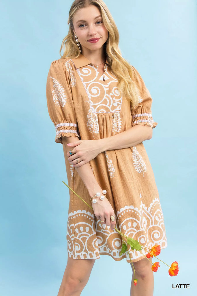 Umgee Paisley Mandala Print Babydoll Dress