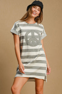 Umgee Peace Applique Striped Short Sleeve Mini Dress
