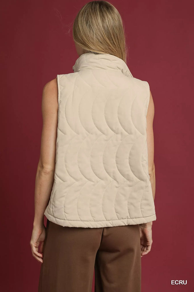 Stay warm and stylish with this Quilted Embroidered Vest, featuring a variety of key features. The front snap button closure offers both convenience and a modern touch to the design. The high stand collar provides extra warmth and a sophisticated look. Side slits and pockets add practicality and style to this versatile vest. The sleeveless design allows for easy layering over long sleeves or sweaters. With a lined interior for added comfort, this quilted embroidered vest is perfect for completing your fall and winter outfits.