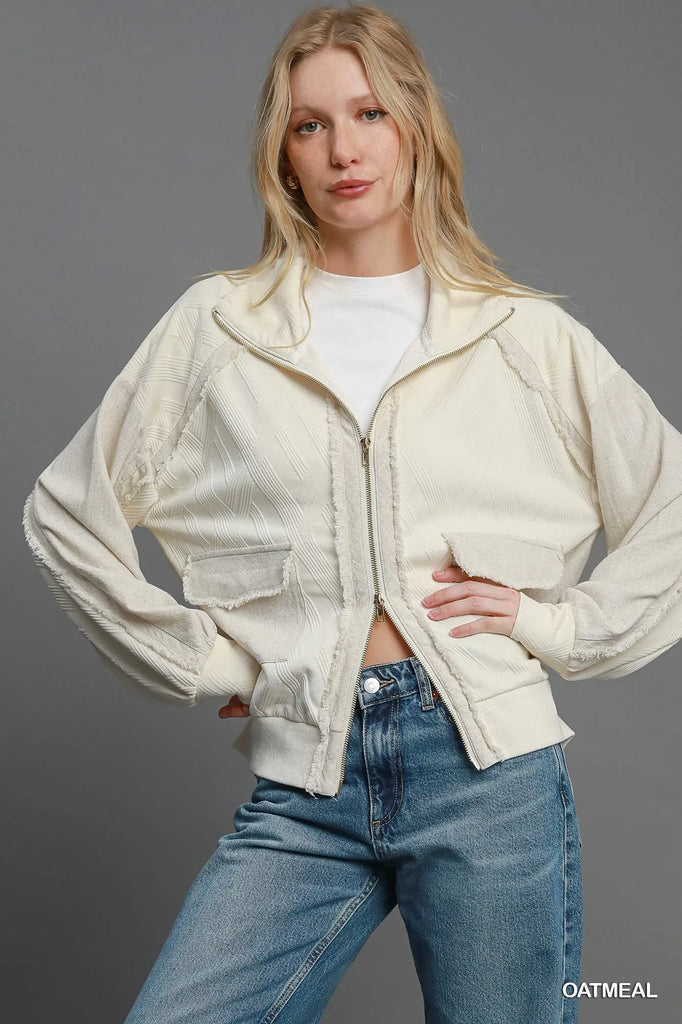 Umgee Two-Way Jacquard Zip-Up Jacket