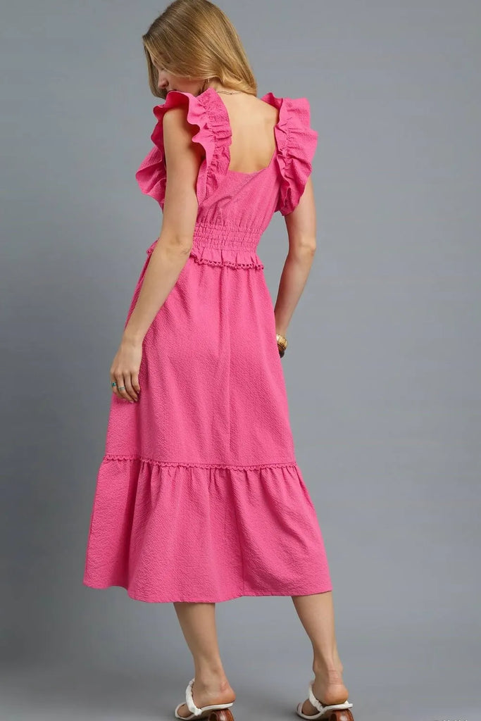Umgee V-Neck Ruffled Cap Sleeve Midi Dress