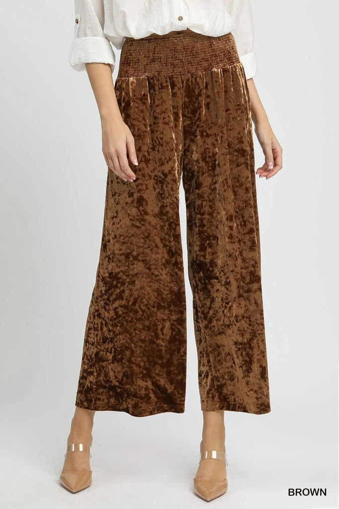 Umgee Velvet Smocked Waistband Wide Leg Pants
